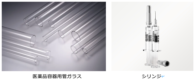 NEGは、高い化学的耐久性を持つホウケイ酸ガラス※2で製造された医薬品容器用管ガラスの主要サプライヤーとして、世界の医薬業界にガラス製品を供給しています。NEGの医薬品容器用管ガラスは、ヒ素などの環境負荷物質を含まない環境配慮型製品であり、バイアル・アンプル用途をはじめ、GLP-1※3製剤などのバイオ医薬品※4を中心に需要が拡大するシリンジ・カートリッジ※5用途にも広く使用されています。