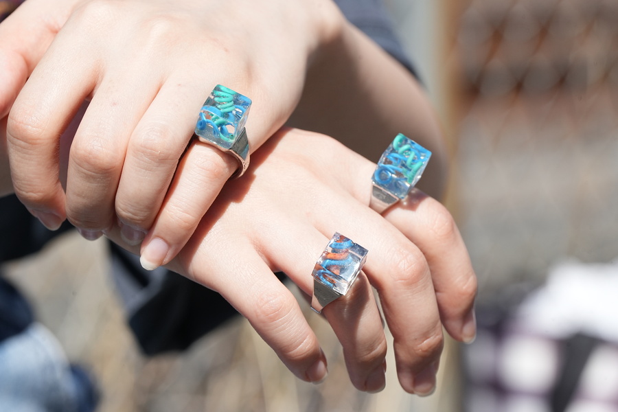 電子廃材を再利用し、ピアスや指輪などのアクセサリーを制作・販売しています。
