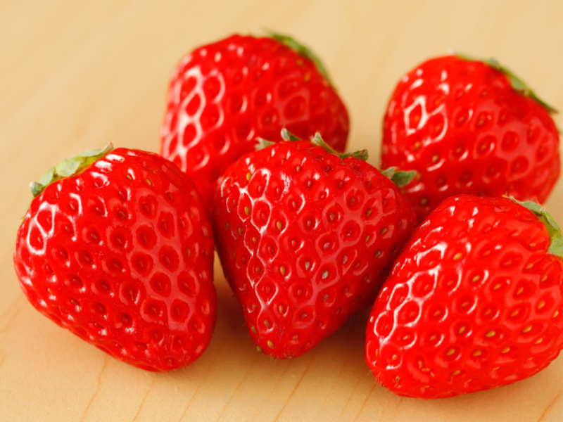 章姫 細長い円錐形と柔らかな食感が特徴。果汁が豊富で酸味が少なくしっかりと甘みが感じられます。
